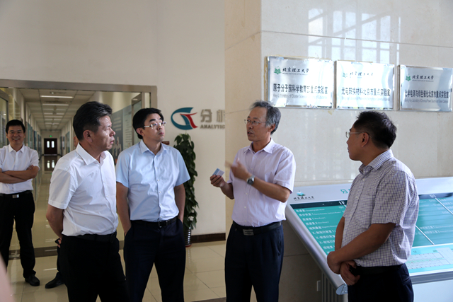 2018年9月6日,江苏省丹阳市市委常委、组织部长石捷一行在副校长李和章的陪同下,参观了分析测试中心。中心主任彭绍春热情接待了到访的校内外领导,并为到访人员详细介绍了中心的建设与运行情况。中心技术负责人马宏伟老师为到访人员介绍了中心的大型仪器设备配置与应用情况。到访的丹阳市领导同志还有丹阳市政府副市长刘宏程、丹阳市委组织部副部长张志明、丹阳市科技局局长王小南等。