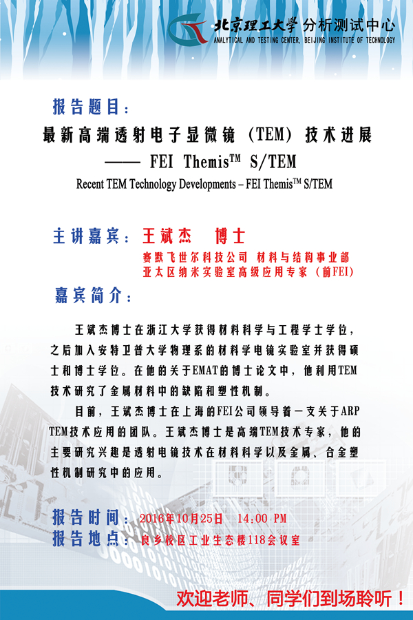 【通知】学术讲座——最新高端透射电子显微镜技术进展