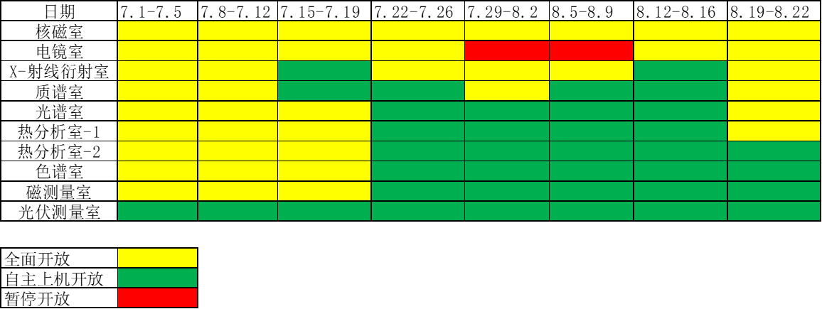 (3)X-射线衍射室:7月1日-7月12日、7月22日-8月9日、8月19日-8月22日;