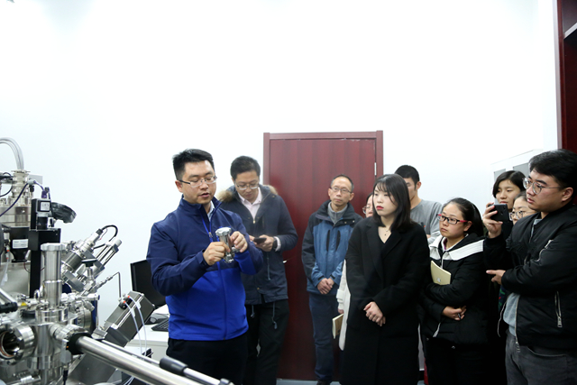 会后,与会专家与师生参观了中心新安装并启用的PHI VersaProbe III多功能X射线光电子能谱仪,鞠焕鑫博士对设备的基本情况做了现场讲解。