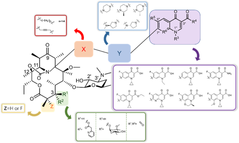 抗生素的广泛使用以及不合理用药已经导致细菌产生了非常严重的耐药性。大环内酯类抗生素是经典的蛋白质合成抑制剂,包括红霉素、克拉霉素、阿奇霉素、泰利霉素等,广泛应用于临床。然而,临床耐药性的加剧极大地限制了其应用。因此开发出一种具有抗耐药菌新机制的大环内酯的任务迫在眉睫。